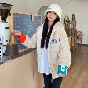 Mixed colors coat elmo cotton coat for women