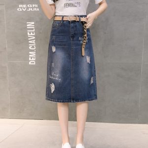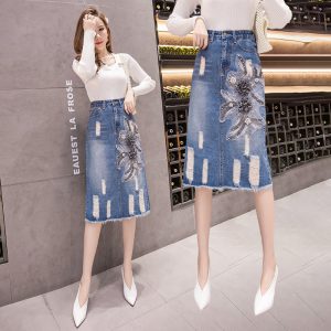 Embroidered slim denim spring and summer skirt