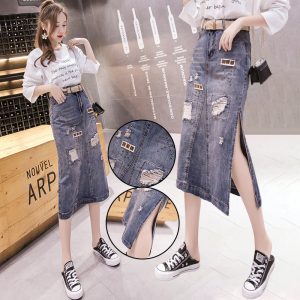 Holes personality denim beading sexy autumn skirt