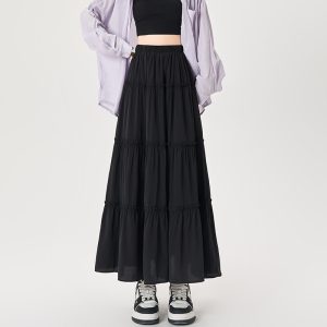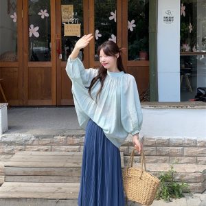 Drape pleated shirt puff sleeve big skirt skirt 2pcs set