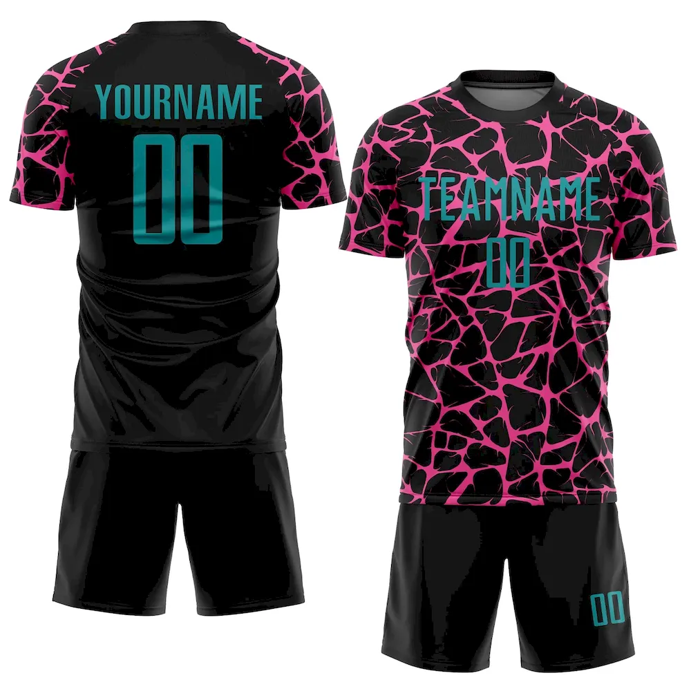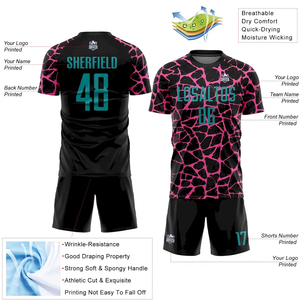 Be the first to review “Custom Black Teal-Pink Abstract Network Splash Sublimation Soccer Uniform Jersey” Cancel reply