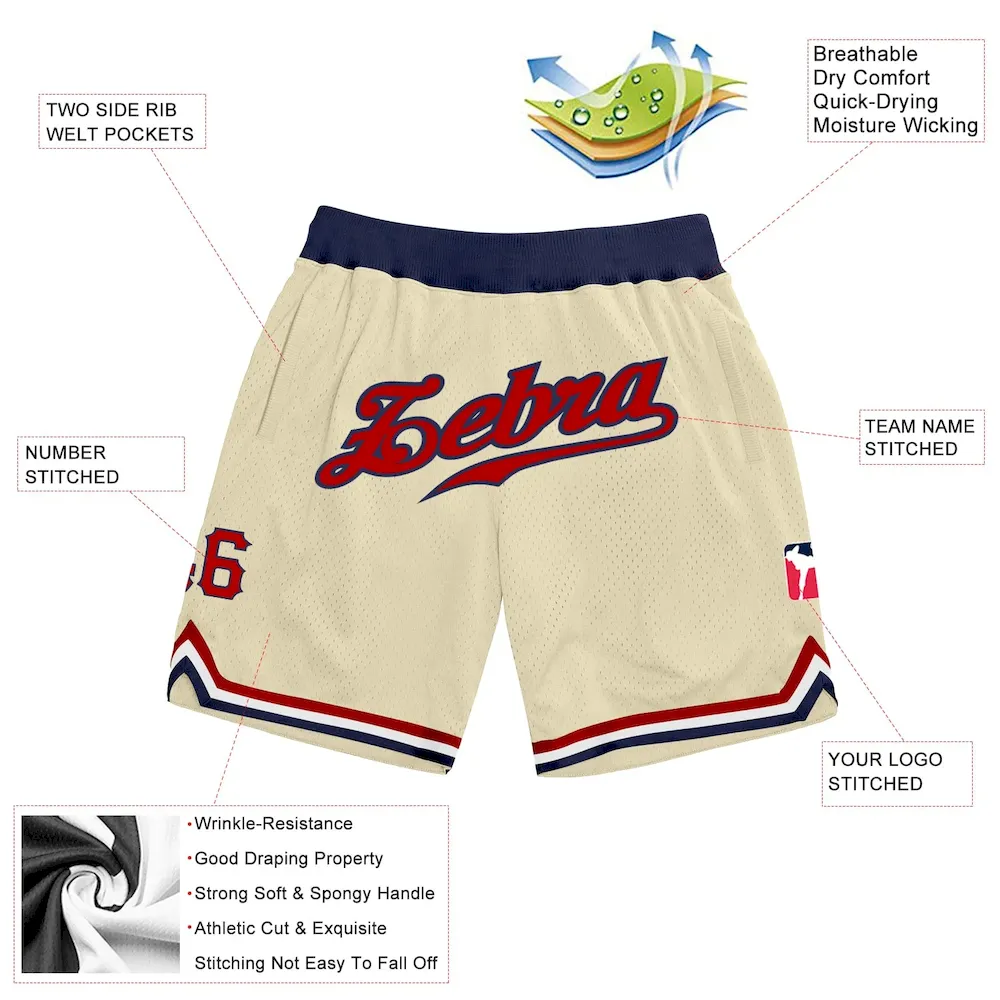 Be the first to review “Custom Cream Red-Navy Authentic Throwback Basketball Shorts” Cancel reply