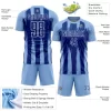 Be the first to review “Custom Light Blue Royal-White Abstract Stripes Sublimation Soccer Uniform Jersey” Cancel reply