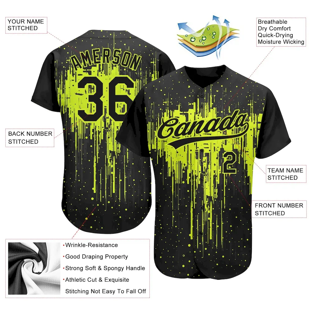 Be the first to review “Custom Neon Green Black 3D Pattern Design Dripping Splatter Art Authentic Baseball Jersey” Cancel reply