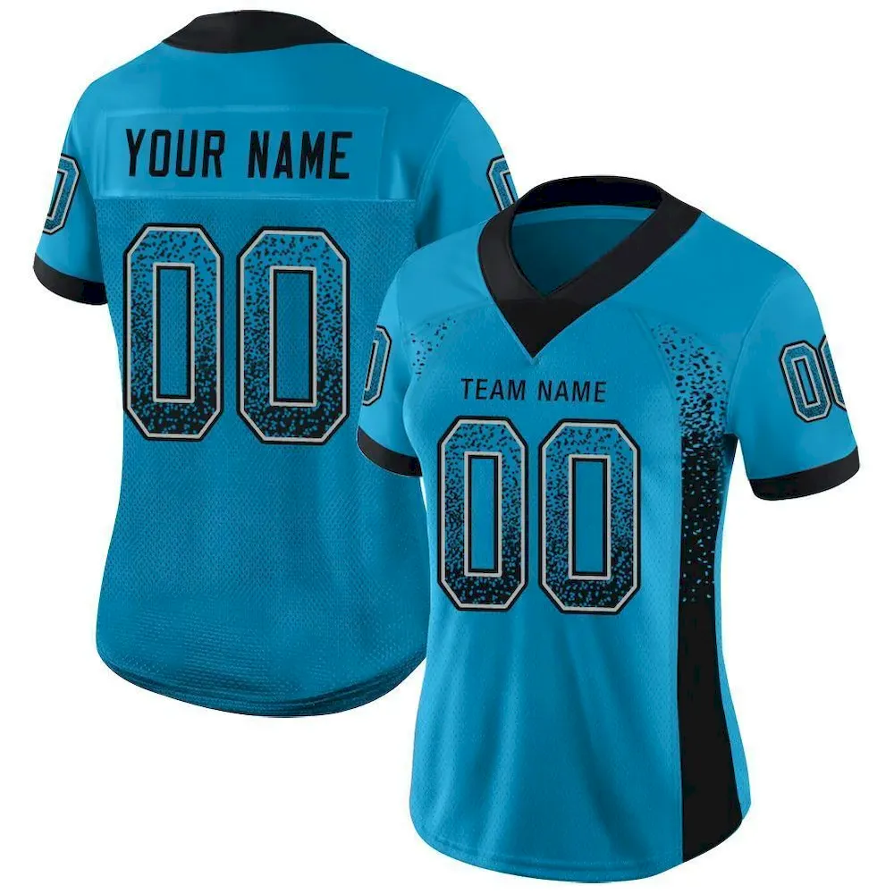 Be the first to review “Custom Panther Blue Black-Gray Mesh Drift Fashion Football Jersey” Cancel reply
