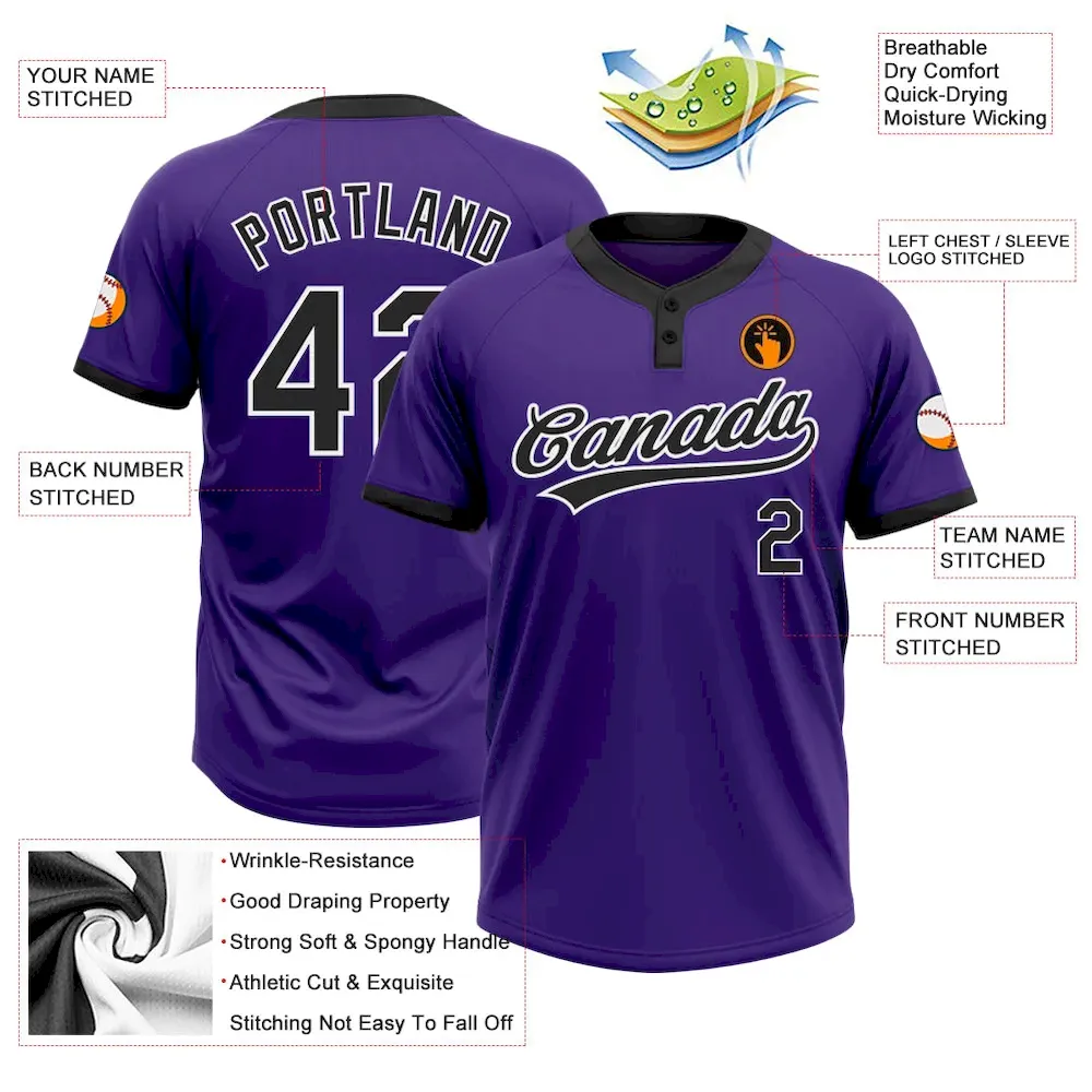 Be the first to review “Custom Purple Black-White Two-Button Unisex Softball Jersey” Cancel reply