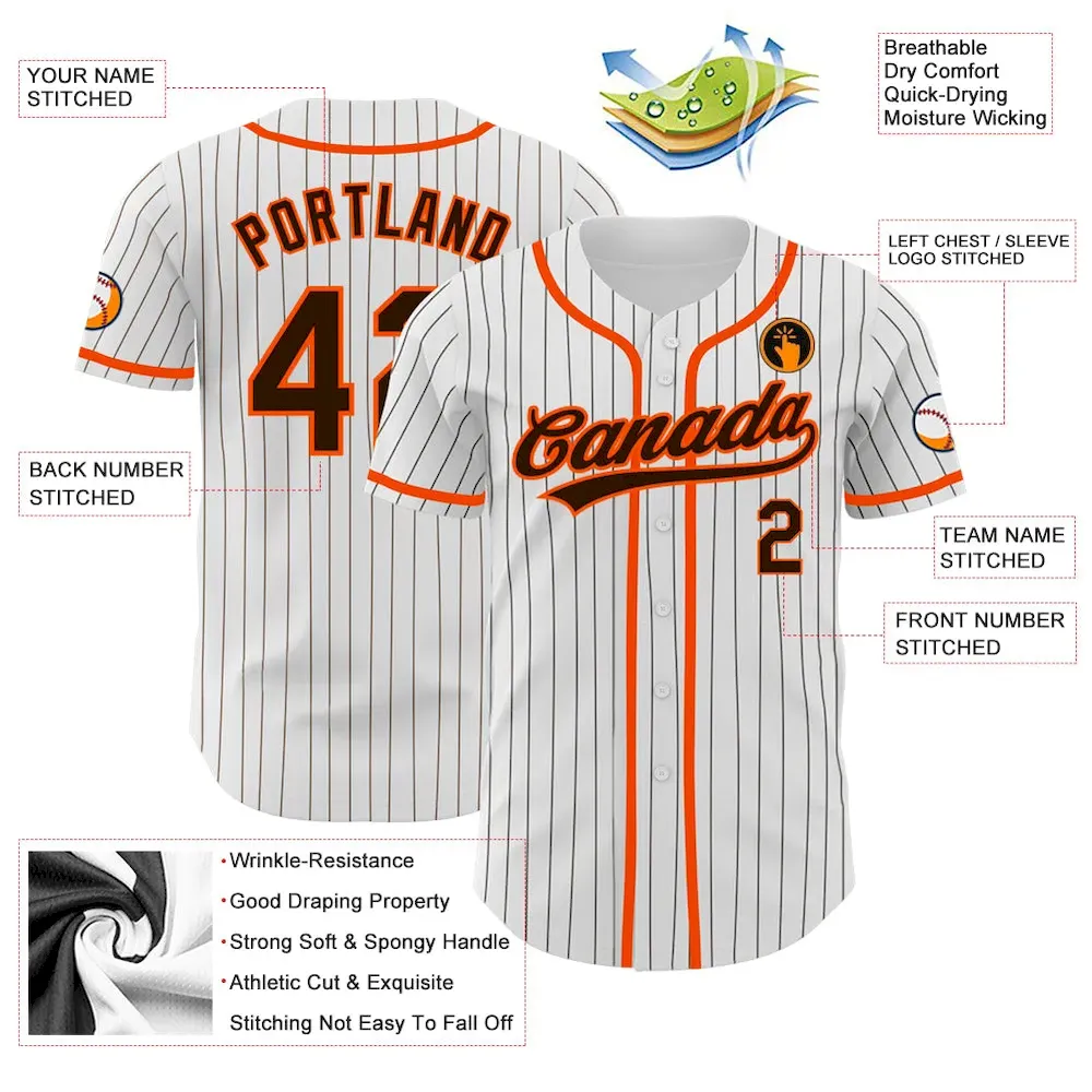 Be the first to review “Custom White Brown Pinstripe Brown-Orange Authentic Baseball Jersey” Cancel reply