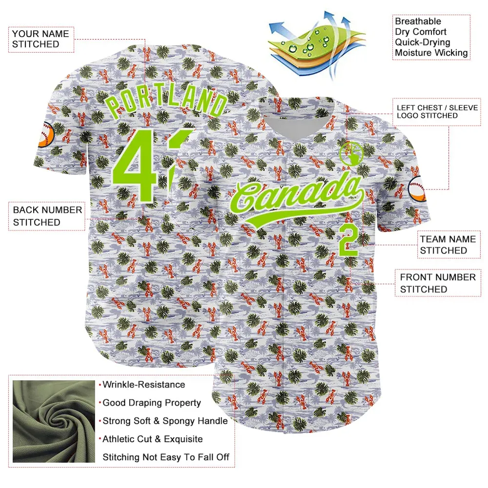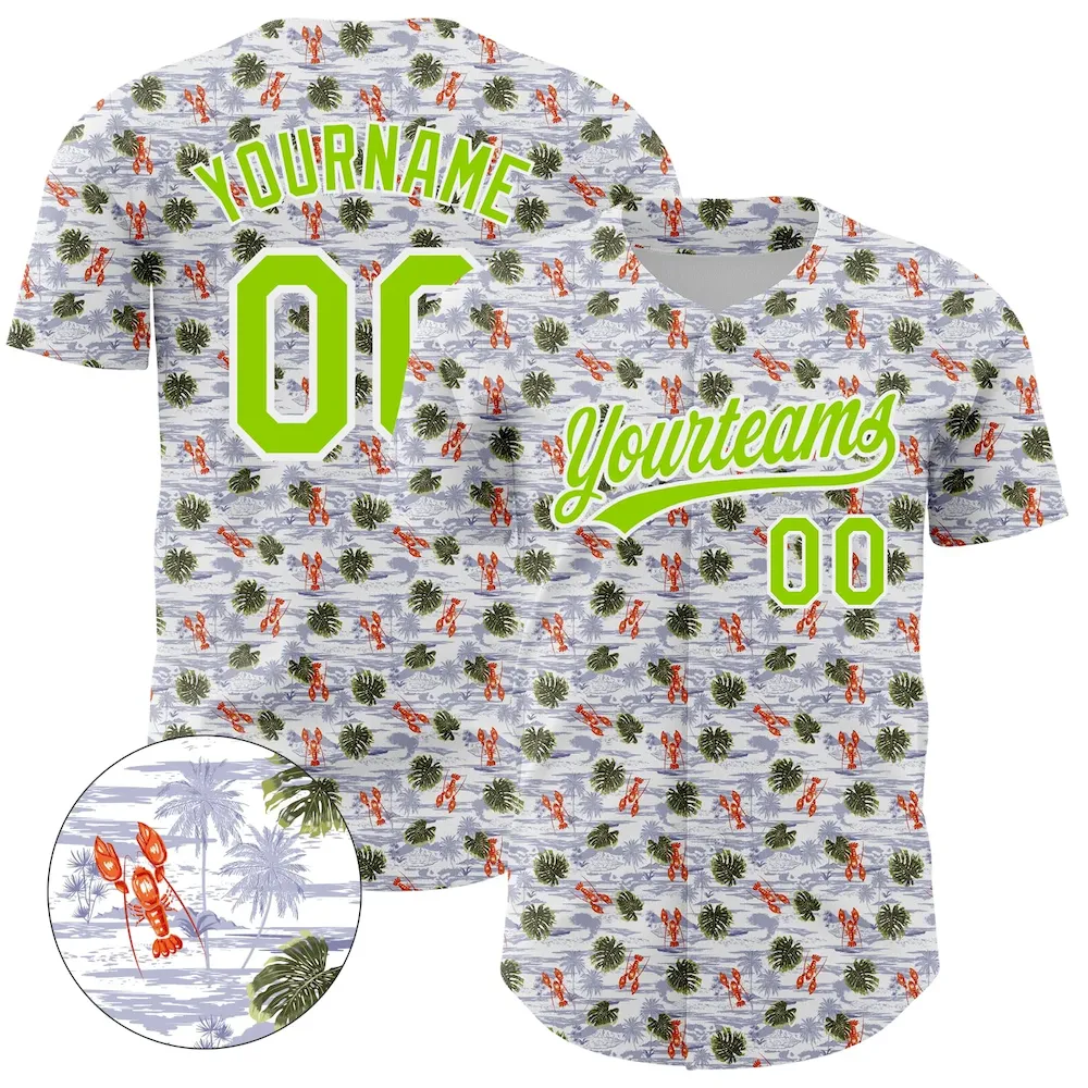 Be the first to review “Custom White Neon Green 3D Pattern Design Animal Lobster And Hawaii Palm Trees Authentic Baseball Jersey” Cancel reply