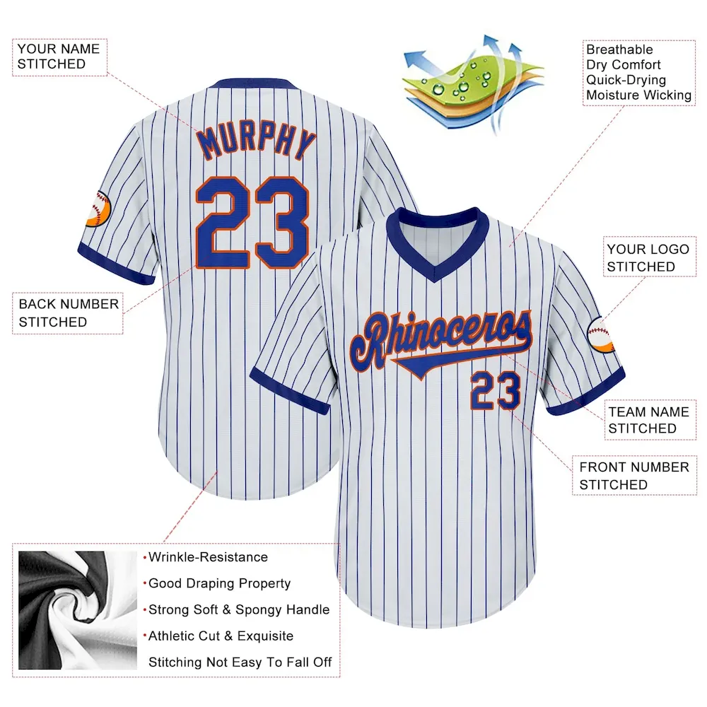 Be the first to review “Custom White Royal Pinstripe Royal-Orange Authentic Throwback Rib-Knit Baseball Jersey Shirt” Cancel reply