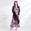 Lotus leaf edges pinched waist dress printing long dress – tiffany-tong