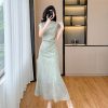 Drape pleated shirt puff sleeve big skirt skirt 2pcs set
