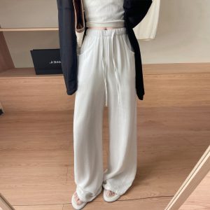 Anti emptied cotton linen wide leg pants elastic pants