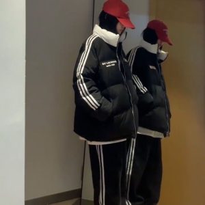 American style thermal bread clothing stripe thick down coat