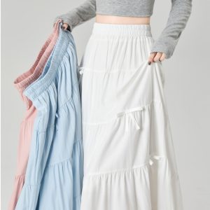 A-line high waist bow show young long skirt