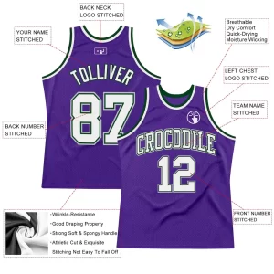 Custom Purple White Green-Gray Authentic Throwback Basketball Jersey