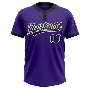 Custom Purple Black-White Two-Button Unisex Softball Jersey