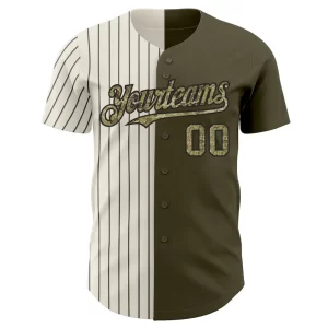 Custom Olive Camo Cream-Black Pinstripe Authentic Split Fashion Salute To Service Baseball Jersey